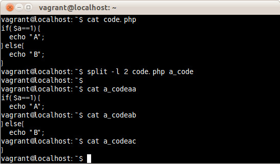 です。オプションには、分割の単位や出力ファイル名の指定などがあります。